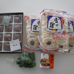 ミートボールたっぷりのシチューにハムカツ、いただいたお漬物もおいしくいただきました マシュマロのデザートもたくさんおかわりしていましたよ ボランティアさんありがとうございます